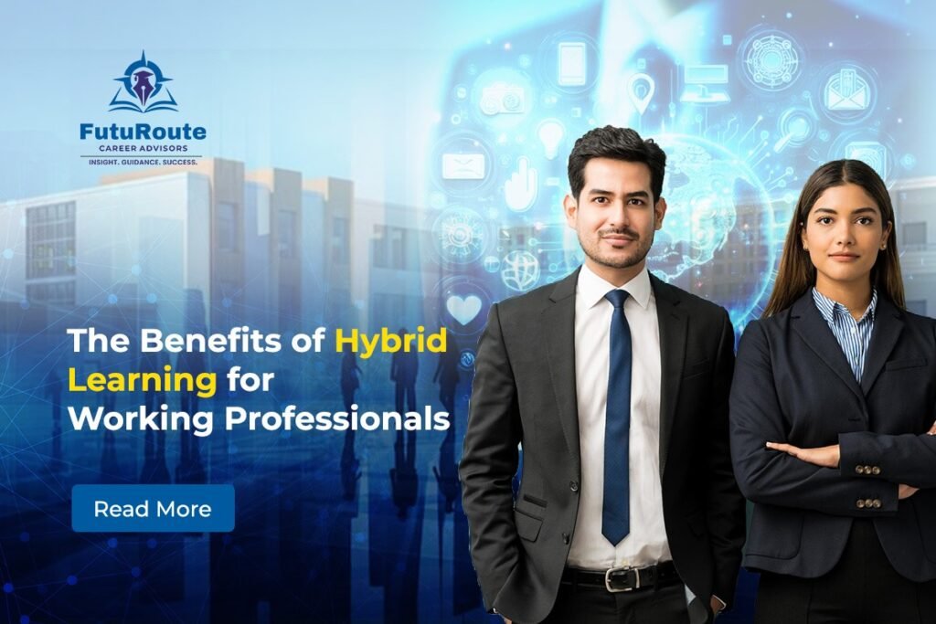 The modern workforce is undergoing rapid transformations, with working professionals in India adapting to an evolving job market, technological disruptions, and changing work environments. Whether you are a mid-career professional looking to sharpen your skills, or an aspiring leader aiming for greater career growth, the pursuit of continuous learning is crucial for success. However, balancing work responsibilities with further education often presents a challenge. Hybrid learning has emerged as a powerful solution for professionals looking to gain new knowledge while managing their careers. By combining the flexibility of online education with the engagement of in-person learning, hybrid programs offer a perfect blend of convenience and interaction. This article delves into the benefits of hybrid learning for working professionals in India and how it can help you unlock your career potential. At Futuroute, we believe in guiding you towards your professional success with personalized career counseling, helping you identify the right learning opportunities that align with your goals. What is Hybrid Learning? Hybrid learning, also known as blended learning, refers to an educational approach that combines traditional face-to-face learning with online components. In a hybrid program, students engage with pre-recorded lectures, reading materials, and interactive discussions online, while also attending in-person sessions for workshops, group activities, and practical learning experiences. For working professionals in India, hybrid learning offers flexibility and convenience. You can access online course material at your own pace and schedule while benefiting from face-to-face interactions with instructors and peers to gain hands-on experience, network, and discuss real-world applications of what you are learning. With its combination of online and offline elements, hybrid learning is the perfect model for working professionals who want to upskill without interrupting their careers. Let’s take a deeper look at the key benefits of hybrid learning. 1. Flexibility to Learn at Your Own Pace For working professionals, time is often the biggest barrier to pursuing further education. Traditional classroom programs require individuals to commit to a fixed schedule, which can conflict with work commitments, personal responsibilities, and family life. Hybrid learning offers the flexibility to learn when it’s most convenient for you. Online components of hybrid courses typically include video lectures, reading materials, assignments, and quizzes that can be accessed at any time, allowing you to learn at your own pace. This flexibility allows professionals to manage their work, family, and personal life alongside their education. For instance, you could watch recorded lectures during evenings or weekends and complete assignments on your lunch breaks. The ability to learn on your own schedule helps reduce stress and enables professionals to maintain a balance between their career and education. Additionally, hybrid learning platforms often offer multiple learning formats, including text-based lessons, videos, and interactive assignments, catering to different learning styles. This makes it easier for professionals to grasp complex concepts and absorb new knowledge in ways that suit them best. Futuroute’s Support: At Futuroute, we guide professionals in selecting hybrid learning programs that offer the flexibility to fit their busy schedules. We understand that your time is valuable, and our personalized career counseling can help you choose courses that provide maximum value with minimum disruption. 2. Access to World-Class Education India’s education system has seen a significant transformation in recent years, with an increasing number of universities, institutions, and online platforms offering hybrid learning programs. However, one of the key advantages of hybrid learning is its ability to provide access to world-class education without geographical constraints. Hybrid programs allow working professionals in India to learn from top universities and experts around the globe. Online elements of hybrid learning give you access to content and resources from leading educational institutions, which would have otherwise been out of reach due to geographic limitations or cost. This is especially valuable for those looking to pursue specialized courses or gain skills that are globally relevant. For example, professionals can enroll in hybrid MBA programs from renowned universities abroad, gaining a global perspective while benefiting from interactive classroom sessions closer to home. Similarly, hybrid courses in emerging fields such as data science, artificial intelligence, and digital marketing allow individuals to learn from industry leaders and access cutting-edge knowledge. Futuroute’s Support: We help working professionals identify and select hybrid learning programs offered by top-tier institutions, enabling them to get the best education available. Whether you are looking for international exposure or local expertise, Futuroute can guide you to the right course. 3. Networking Opportunities and Peer Learning While the online components of hybrid learning provide flexibility, the in-person sessions are where the real value of networking and peer collaboration lies. Hybrid learning brings together professionals from diverse industries and backgrounds, allowing for valuable networking opportunities. In-person workshops, seminars, and group discussions facilitate the exchange of ideas, experiences, and insights with peers and instructors. These interactions create an environment where professionals can collaborate, share industry-specific knowledge, and learn from each other’s experiences. For example, a group discussion on leadership challenges in a hybrid MBA program may allow you to hear firsthand how other professionals tackle similar issues in their industries. The ability to build relations